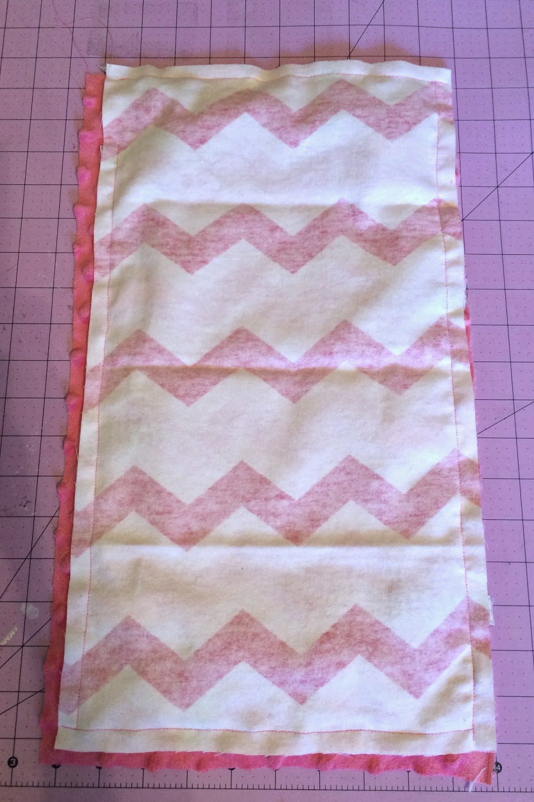 4. Sew along the edge with a 1/2″ seam allowance.  Make sure to leave a small opening to turn the lovie right-side-out.
