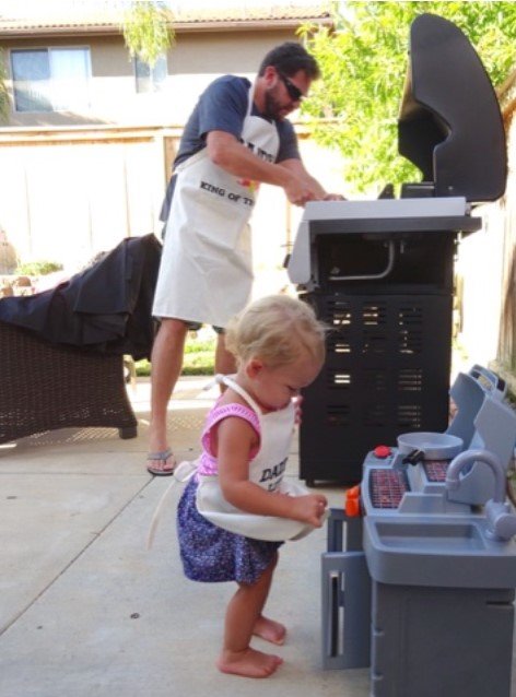 These aprons were a hit! My hubby couldn’t wait to try them out, and our little one was so excited to grill with her Daddy.